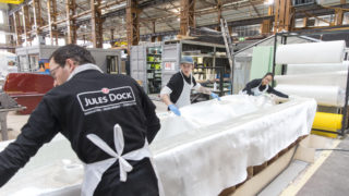Om te komen tot een serieproductie werkt Jules Dock Composites met moderne productietechnieken zoals vacuüminjectie en robotarmen.